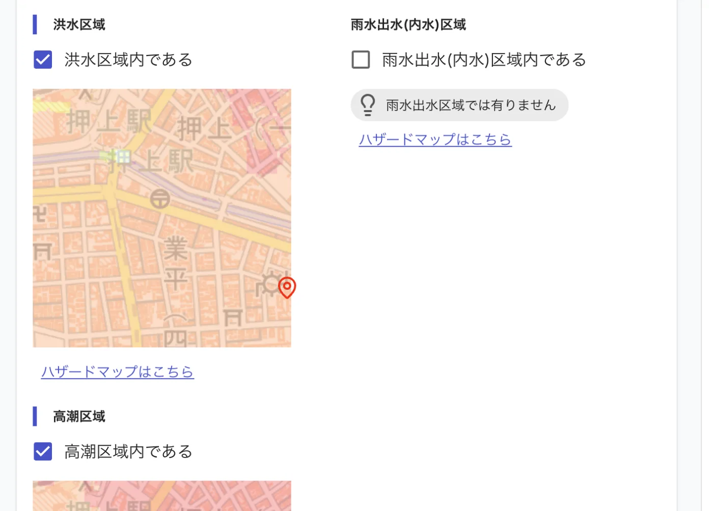 重要事項説明書に必要な都市計画情報、ハザードマップ情報を住所から自動取得。国土交通省の提供しているデータをリアルタイムに取得しています。従来の手作業による調査時間を大幅に削減し、正確な情報収集を実現します。