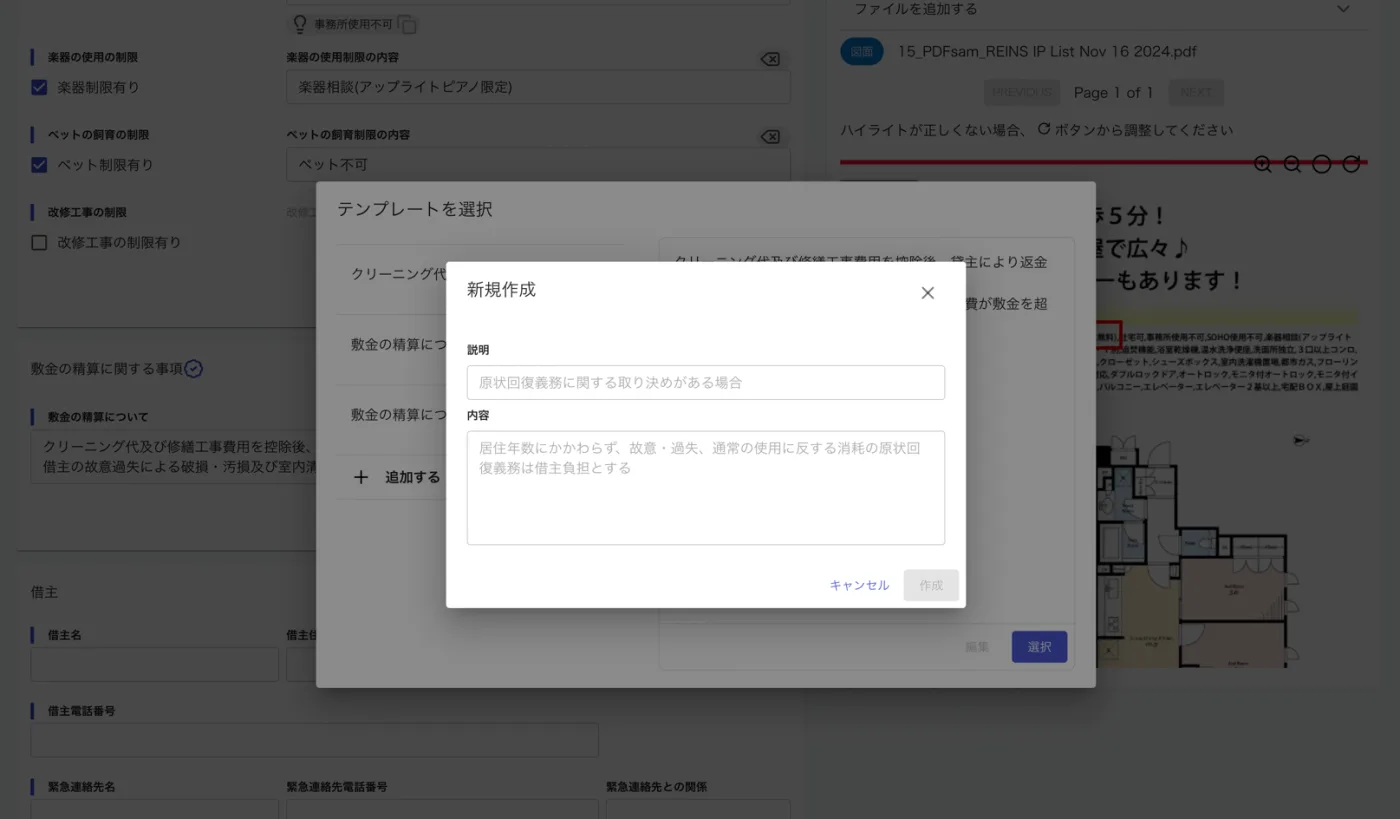 重要事項説明書・賃貸借・売買契約書をAIが自動生成。